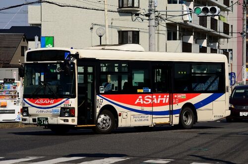 所属-朝日自動車久喜営業所 社番-2234 登録ナンバー-春日部200 か・346 型式-いすゞエルガミオ KK-LR233J1改 年式-2004年 朝日自動車のエルガミオの多くは、デンソー製クーラーを屋根上に搭載していますが、2002年~2004年に導入された21台(2192~2196,2211~2218,2226…