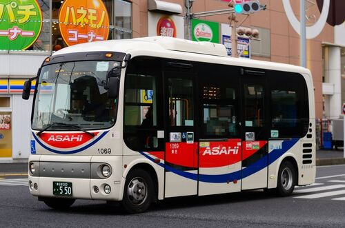 所属-朝日自動車越谷営業所 社番-1069 登録ナンバー-春日部200 か・550 型式-日野ポンチョ BDG-HX6JLAE 年式-2009年 越谷営業所の小型車は運行路線が限定されており、絶対に小型車が入らない路線というものもあります。 ・春日部駅発着の越谷持ちの運用(※杉戸持…